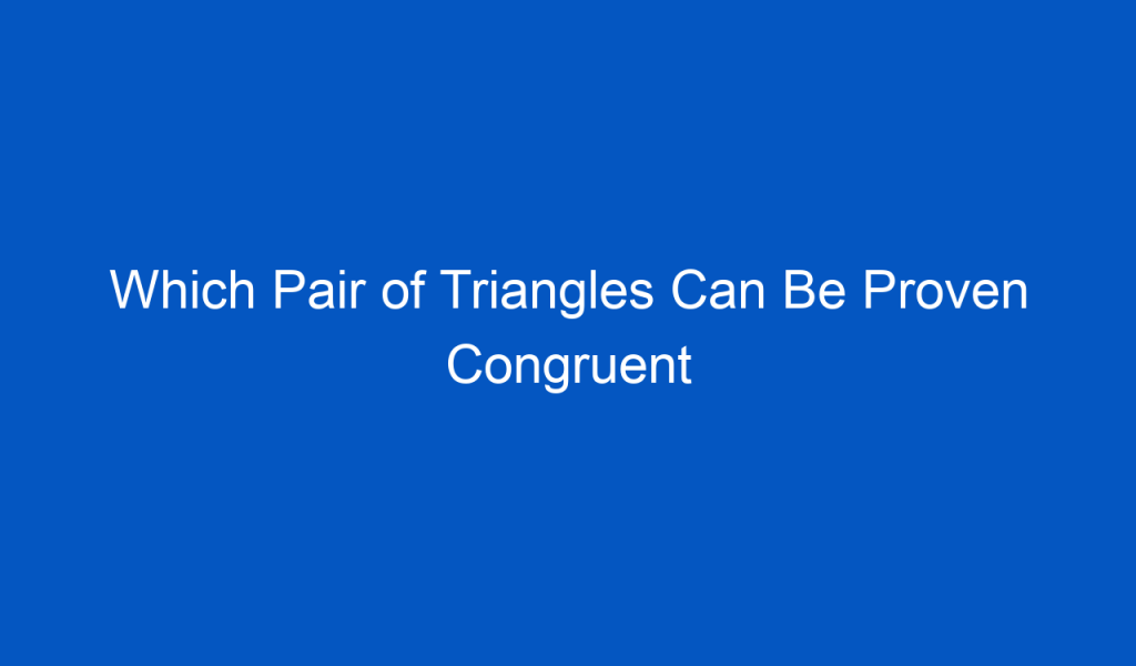 Which Pair of Triangles Can Be Proven Congruent by Sas? Triangles are everywhere—in architecture, design, road signs, and even nature.